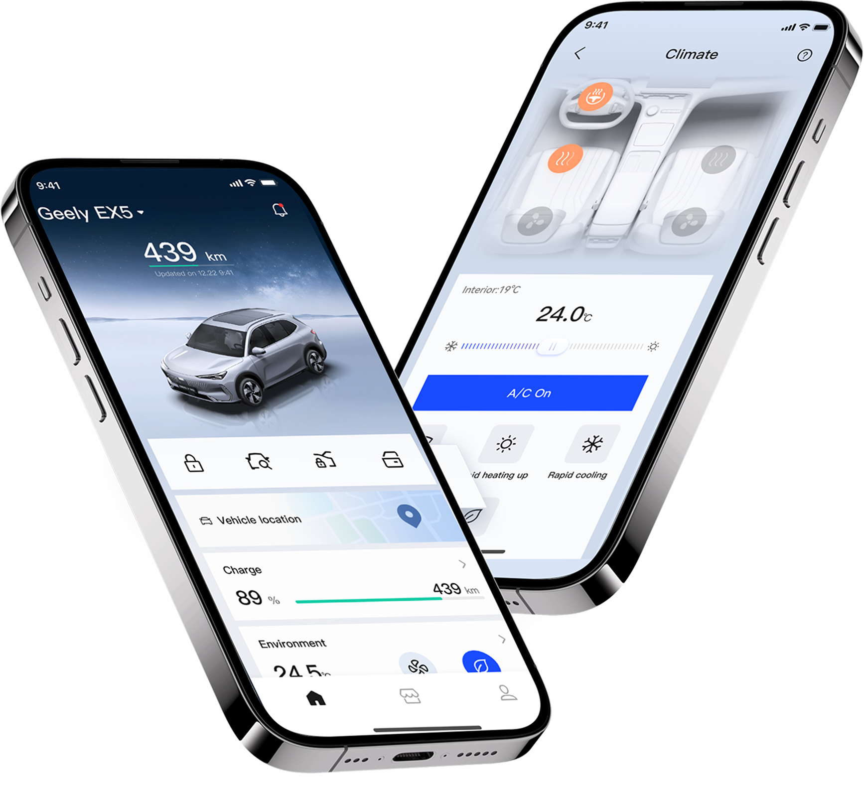 Nueva plataforma móvil diseñada para brindar a los propietarios de Geely EX5 una gestión de vehículos fluida e inteligente. Esta innovadora aplicación afirma el liderazgo de Geely en tecnología de vehículos conectados, brindando una experiencia de propiedad más inteligente y accesible a su creciente base global de clientes.